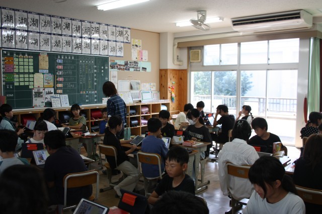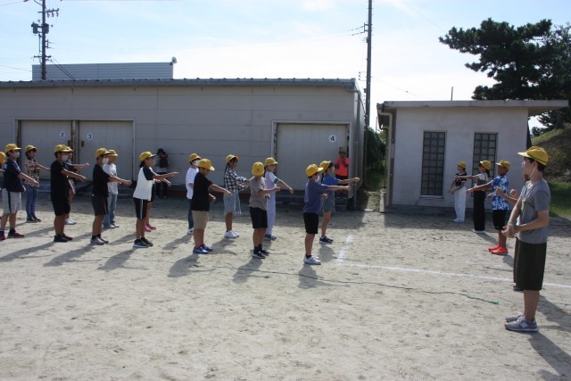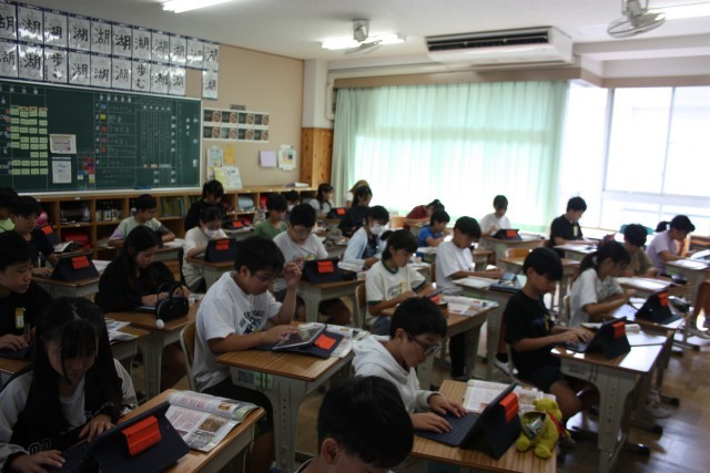 6年1組 理科の学習に取り組んだ後、運動会の応援の練習をしています。