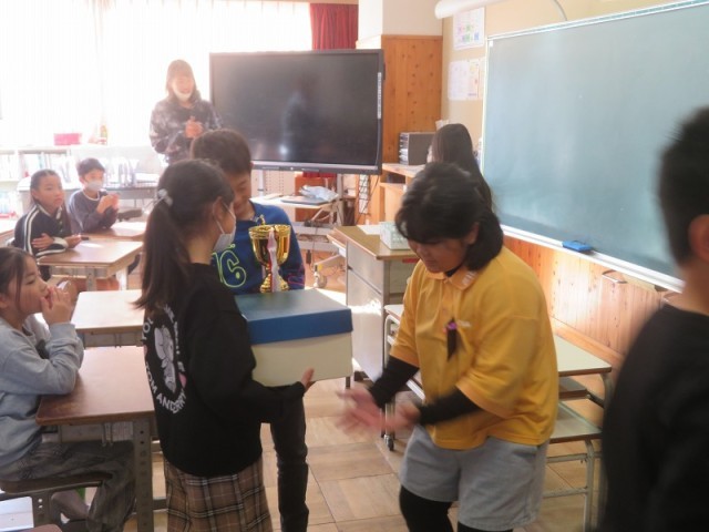 本日、赤組の4年生から赤組の3年生に回ってきました。