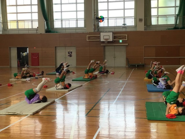 体育館でも2年生がマット運動、6年生が縄跳びで、しっかり体を動かしていました。