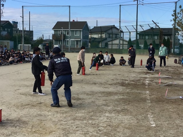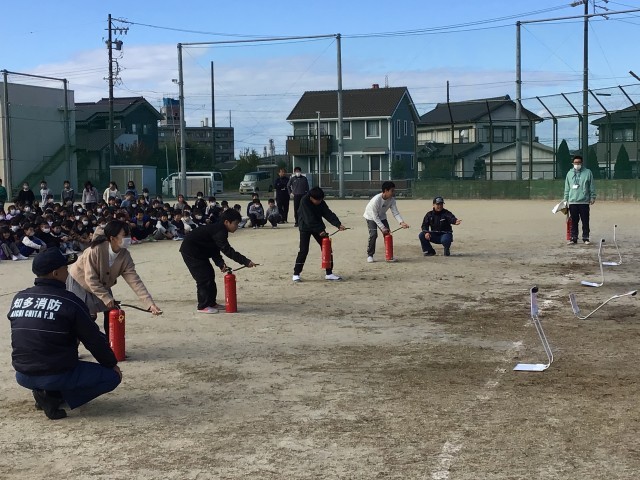 訓練用消化器を使用し、消化器の使用方法も学びました。