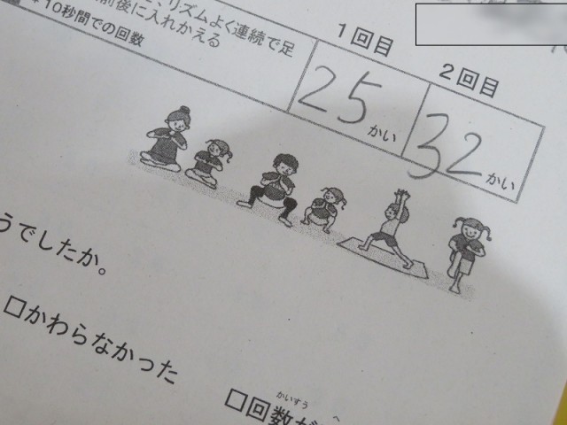 初め25回跳んでいた児童が、エクササイズ後には32回も飛んでいます。
