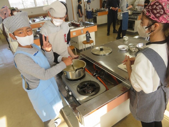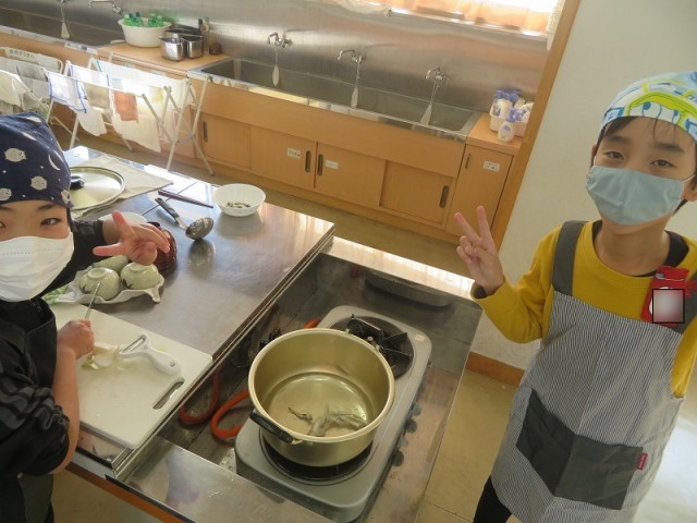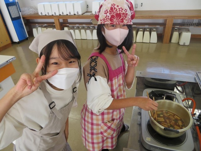 煮干しと赤味噌の香りが漂う家庭科室でした。