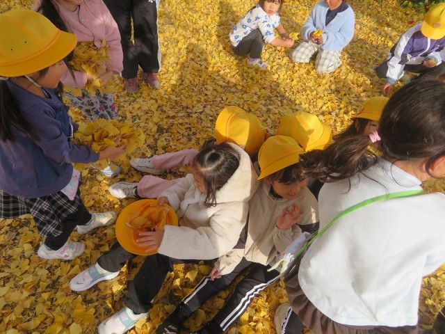 イチョウを集めてソファーにする子も。