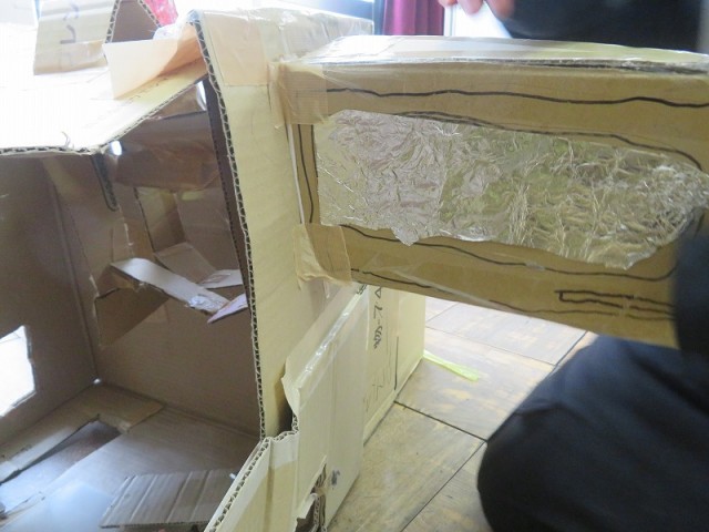 クリアファイルを使った窓、アルミホイルを使った可動式のドアミラー、