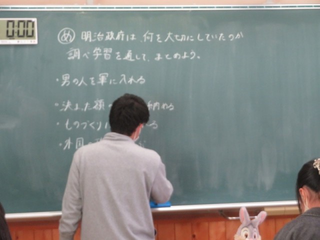 明治政府の取組のイメージを事前に調査・集計し、その結果を参照しながら。調べ学習へと展開をしていきます。