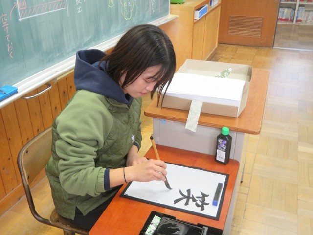 今年は、各教室で半紙を使って文字を書きました。