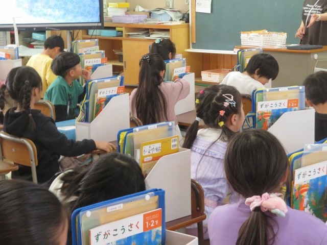 早くも次年度の教科書を手にし、うきうきの1年生>
