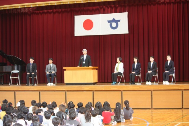 始業式の校長先生の話では、「今年度、どんな1年にしたいですか」「新知小の生活の中で、どんなことをしたいですか」と子どもたちに話しかけ、「校長先生は、この新知小の1から6年生の皆さんや先生方が笑顔で楽しんで過ごせる学校にしたいです」という話がありました。