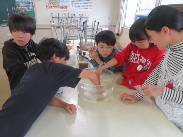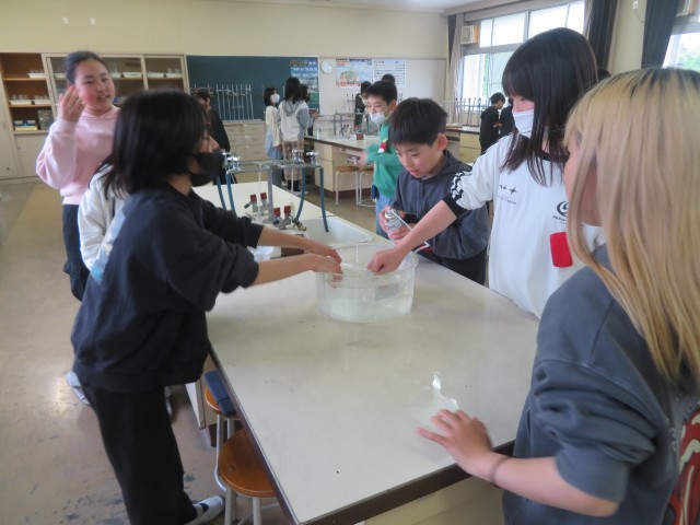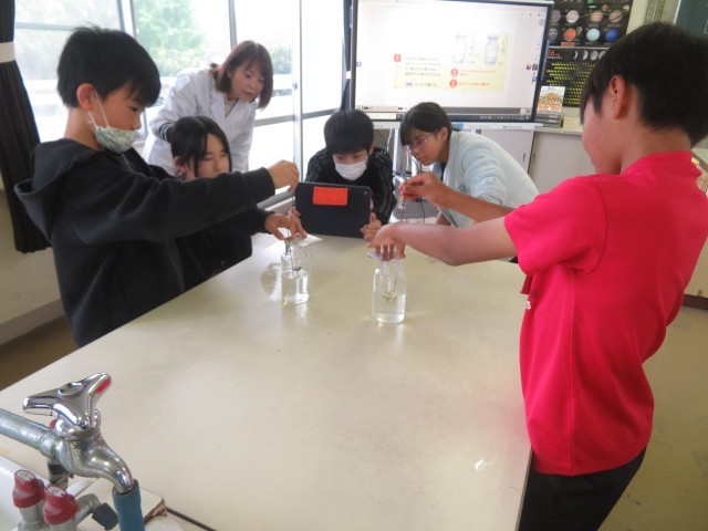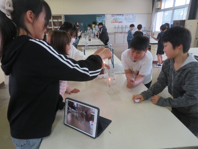 5時間目に6年3組の理科の授業で、「ものを燃やすはたらき」について学習していました。タブレットを使って動画を撮ったりしながら、どの気体にものを燃やすはたらきがあるのか実験していました。予想どおりの結果になったでしょうか。みんな楽しみながら実験をしていました。