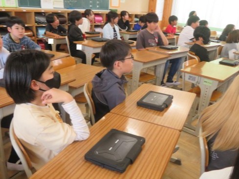 タブレットの更新時期を迎えたため、随時新しくなっています。6年生の学級では、新しいタブレットの扱い方について動画で学んでいました。今回、新しくなったものは、キーボードが簡単に脱着できるため、タブレットを持ち運ぶときには十分注意しないといけないとのことです。扱い方には気をつけつつ、効果的に活用していきましょう。
