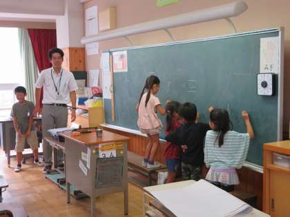 1年生も2学期になって漢字の学習をしています。黒板に書いてみて,みんなで確認していました。