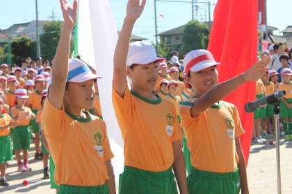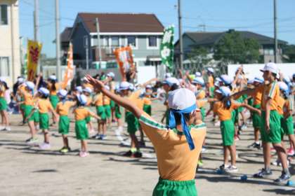 そのおかげで、風はややあったものの、秋晴れの下で運動会を開催することができました。子どもたちの活躍する姿を、ほんの一部ですがご覧ください。