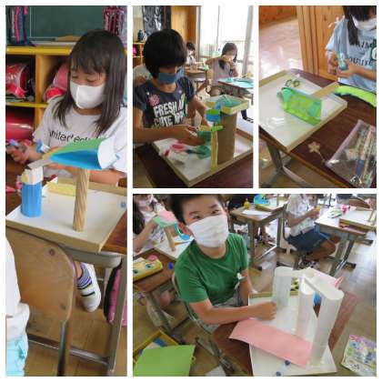 4年2組の5時間目は,工作をしていました。「ころころガーレ」を作っていました。なかなか立体感のある作品が多く見られました。完成して遊ぶのが楽しみですね。