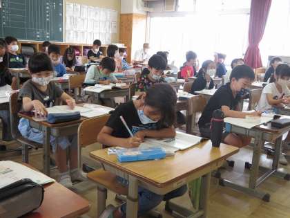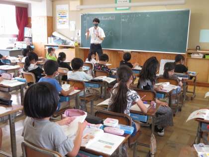 3年2組の算数では,割り算の学習をしていました。割られる数・割る数・商という言葉を確認し,式に表しました。