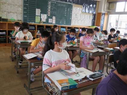 4年1組では,漢字辞典を使って,漢字の読みや意味,使い方を調べていました。国語辞典とは少し勝手が違うので,しっかり使い方を覚えましょう!