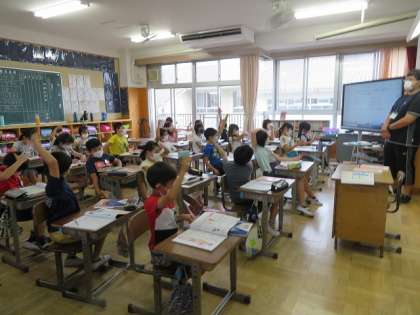 4年2組の理科の授業では,単元のまとめ問題に取り組んでいました。みんなで,確認してしっかり理解しましょう!