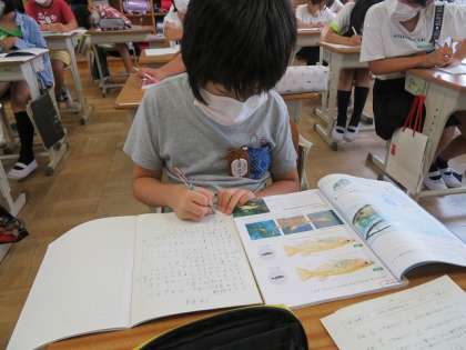 5年2組の理科の授業では,「メダカの誕生」についてまとめをしていました。今まで学習してきたことを整理し,ノートにまとめていました。