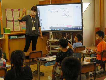 2年1組の算数の授業では,くり下がりのある引き算を学習していました。筆算に書き表して,くり下がりをするためにどうすればいいか,話し合っていました。