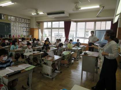 5年2組では,外国語科をしていました。「When is your birthday ?」の学習です。ALTのアンジェリカ先生に聞かれると,みんな素早く自分の誕生日を答えていました。