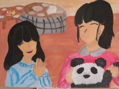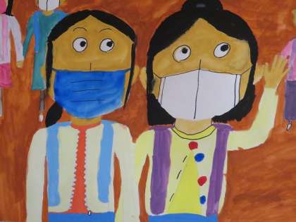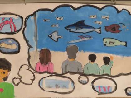 5年生は「楽しかった思い出」を掲示板に掲示しています。思い思いに楽しかったことが見る人に伝わるように描いているのはさすがです。絵の中には,楽しかったことに「久しぶりの登校」を描いている児童もいました。