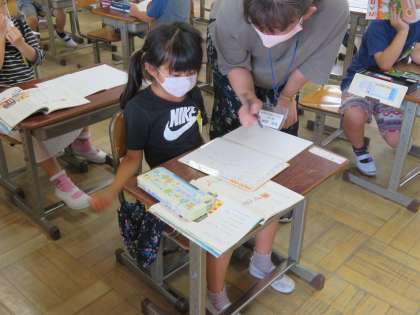 1年2組の国語では,拗音(小さなゃゅょ)の表記について練習していました。先生に○をもらえて嬉しそうです。