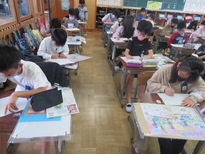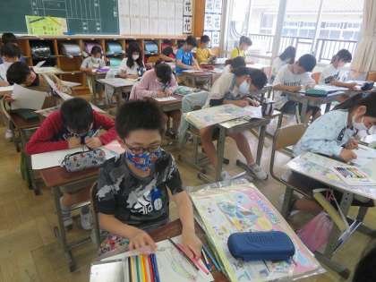 4年1組の図工の時間では,コロコロガーレの構想を練っていました。立体的な迷路のように作り,ビー玉を転がして楽しむものです。作るのが楽しみですね。