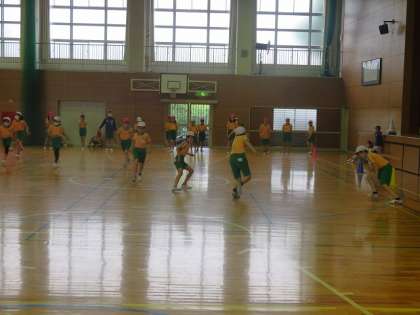 梅雨入りしたので,体育館での体育が増えそうです。今日の5年3組では,先生の合図で向きを変え,ダッシュをしていました。瞬発力を養いたいですね。