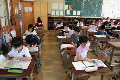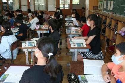 4年2組が社会科で,愛知県にある伝統的な建物について調べていました。地図を使って建物のある場所を探すと,愛知県の地理が自然に頭に入ってきます。