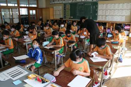 4年3組が,運動会の種目について確認をしていました。その後,プリントに各自の運動会の目標を記入していました。みんなで協力して,思い出に残る運動会にしたいですね。