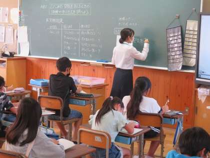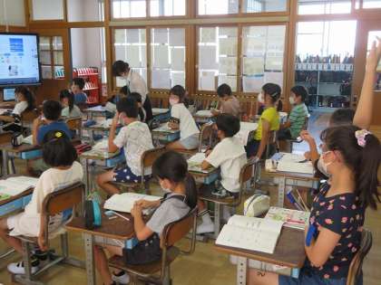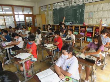 4年1組では,教育実習生が理科の授業をしていました。閉じ込めた空気を押すとどうなるか,話し合っていました。みんなで話し合って,実験の結果をしっかりまとめていきたいですね。