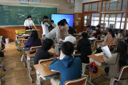 6年2組が理科で,「てこ」の実験をしていました。今回は,身の回りの道具に,てこのはたらきがどのように利用されているか,はさみやペンチ,釘抜きなどを実際に使って調べました。