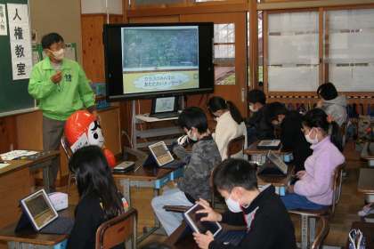 4年3組の様子です。勇気を出して「イジメはダメ」,「思いやりの心」をもって「優しい言葉」や「はげましの言葉」をかけてあげることが大切だということや,また,「子どもの人権110番」や「SOSミニレター」についても,教えていただきました。人権擁護委員の皆様,ありがとうございました。