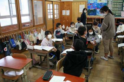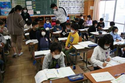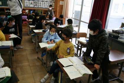 3年2組が算数で,計算のきまりについて学習していました。今回は,( )を使った式についてです。近所の子と,作戦タイム中でした。