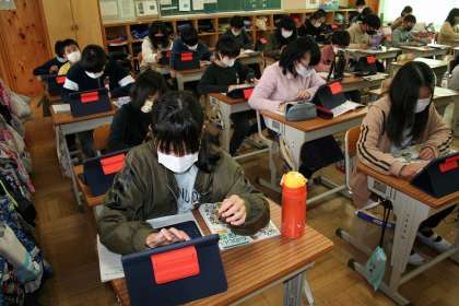 6年1組が体育で,保健の授業をしていました。テーマは,「病気の起こり方について考えよう」です。保健の教科書や資料を使って考えていきます。
