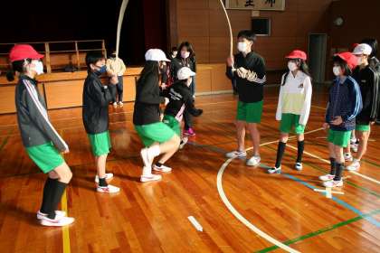 6年1組が体育で,8の字とびの練習をしていました。速さを突きつめていくと,芸術作品に近付いていくように感じます。