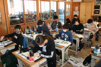 5年3組が書写で,毛筆の「初春」の清書を書いていました。「書写学習カード」にそって学習を進め,毎時間自分のめあてとふりかえりをしつつ,上達につなげていきます。