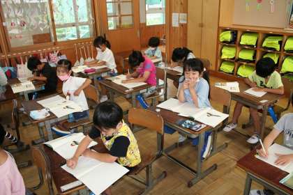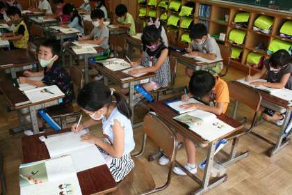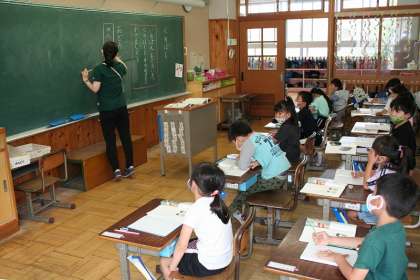 1年2組が国語で,「くちばし」を学習していました。今日のめあては,「いちばんおどろいたくちばしと,そのわけをかきましょう」です。「おどろいたくちばしは( )です」の( )に鳥の名前を入れます。