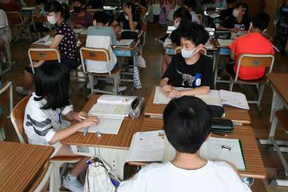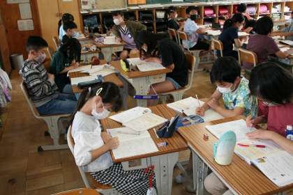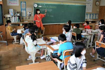 5年3組が算数で,小数のわり算の文章問題に取り組んでいました。問題を図に表して考えていました。
