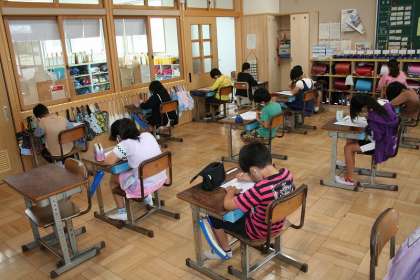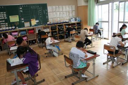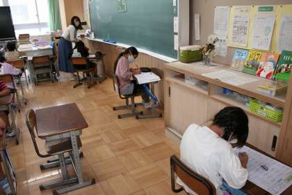 3年1組が,国語のテストに取り組んでいました。みんながんばっています。
