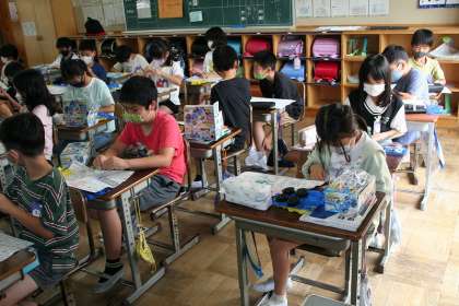 4年2組が理科で,電流のはたらきについて学習するツールであるプラモデルの車を作っていました。設計図を見て作るのは,プラモデルの製作と同じです。まず,実験の前に,作って動いた時の感動が味わえます。