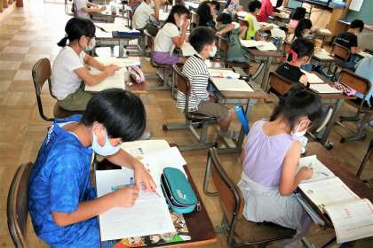 3年2組が国語で,「こまを楽しむ」を学習していました。本時は,説明文の構成での「おわり」を読み取っていました。全体のまとめ,筆者の主張が読み取れたかな。