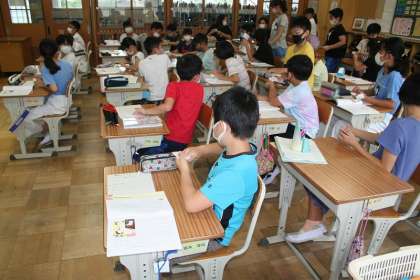 5年3組が道徳で,「短所を改め,長所を伸ばす」ことについて話し合っていました。自分の良さを見つめ直し,友達の良さも見つけていました。