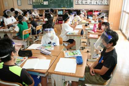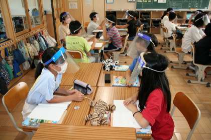 5年1組が理科で,「花から実へ」の単元に取り組んでいました。今日のめあては,「めしべに花粉をつけるときと,つけないときの実のでき方を調べよう」です。グループで,「どうやって花粉がめしべにつくのか」を話し合っていました。
