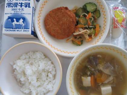 今日の献立は,ご飯,里芋コロッケ,切り干し大根の和え物,けんちん汁,月見団子,牛乳でした。9月10日(土)は,中秋の名月です。大きな月が見えるといいですね。