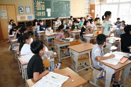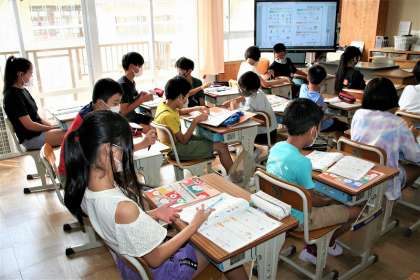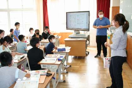5年2組が外国語科で,身近な人ができること・できないことを,英語で発表していました。