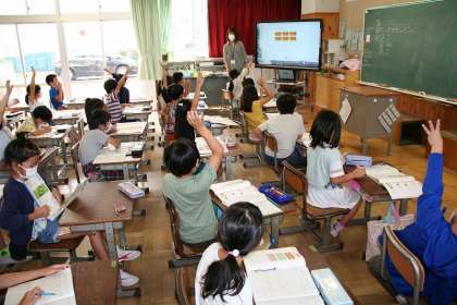 1ねん1くみがさんすうで,10よりおおきいかずのれんしゅうもんだいをしていました。がんばれ!
