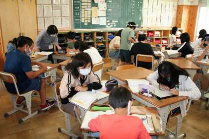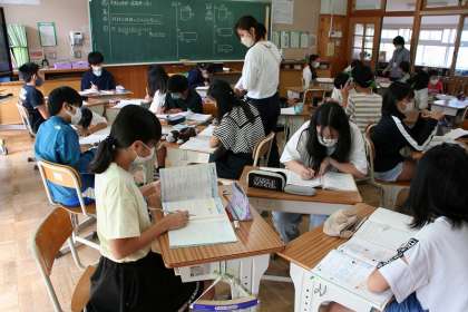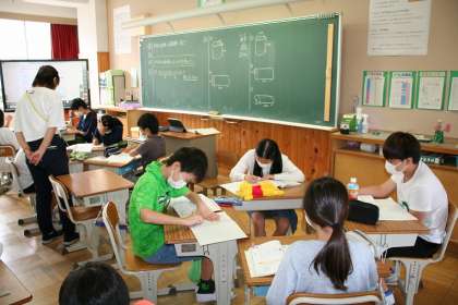 6年2組が算数で,円柱の体積の求め方を考え,練習問題に取り組んでいました。1年生の10の数を数えていた頃から,ここまでできるようになりました。すばらしい成長だなと,1年1組から6年2組の教室に移動して思いました。