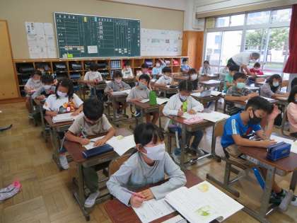 2年2組では,国語の物語「お手紙」の読み取りをしていました。がまくんとかえるくんの心温まるお話です。気持ちをしっかり読み取っていました。