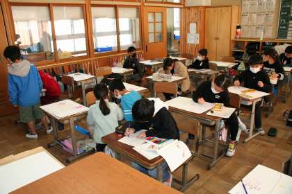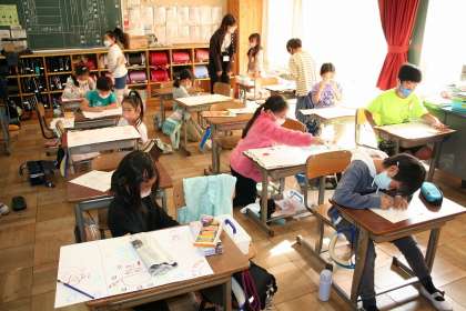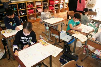 3年2組が図工で,「まいごのかぎ」の感想画に取り組んでいました。下書きが終わり,彩色に進む子が多くいました。
