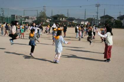 大放課に,なわとびのペアジャンピングタイムがありました。1・6年生の日です。yoasobiの曲に合わせて,1・6年生がペアでなわとびをしていました。